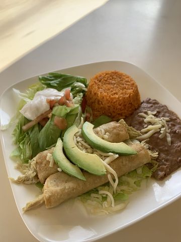 Servidos con Lechuga, Tomate, Queso, Crema, Frijol, y Aguacate / Served with Lettuce, Tomato, Cheese, Beans, Sour Cream, and Avocado